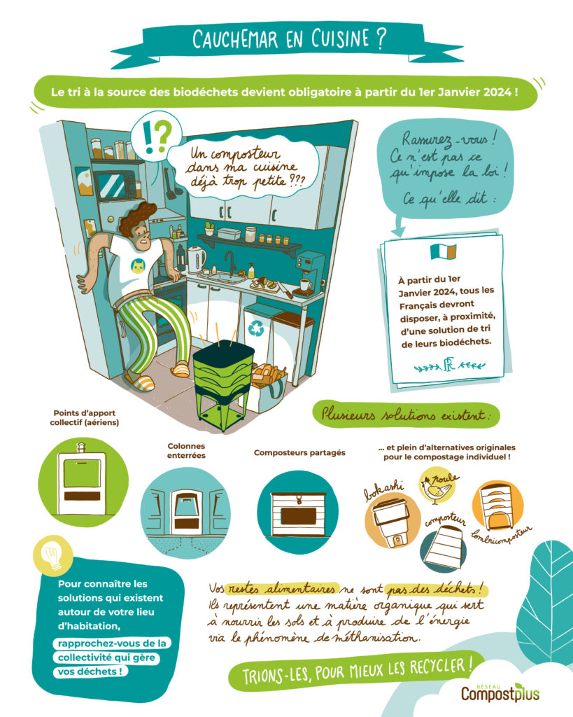 Afin de promouvoir le tri à la source des biodéchets, le Réseau Réduire+ a réalisé des infographies à destination des collectivités, mais aussi du grand public pour éclairer et faciliter la compréhension de quelques messages essentiels.